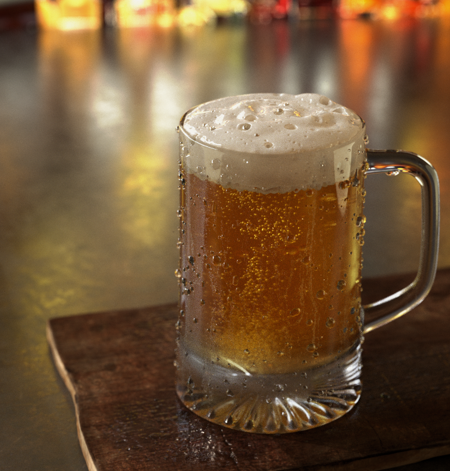 Other than that, it's just a fun little bar-top scene. Custom wood board and glass, added droplets, XP bubbles, Vertex Maps, Volume Built Foam, HDRI from HDRI HAVEN, bar texture from google for emission, and that's about it.